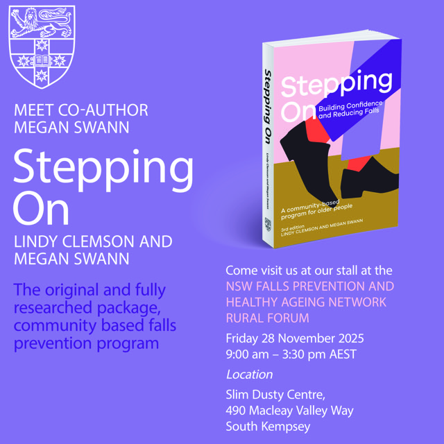 Come to visit us at the Stepping On stall at the MNCLHD Rural Forum (28 November 2025) and the Australia and New Zealand Fall Prevention Society Conference (23-25 November).